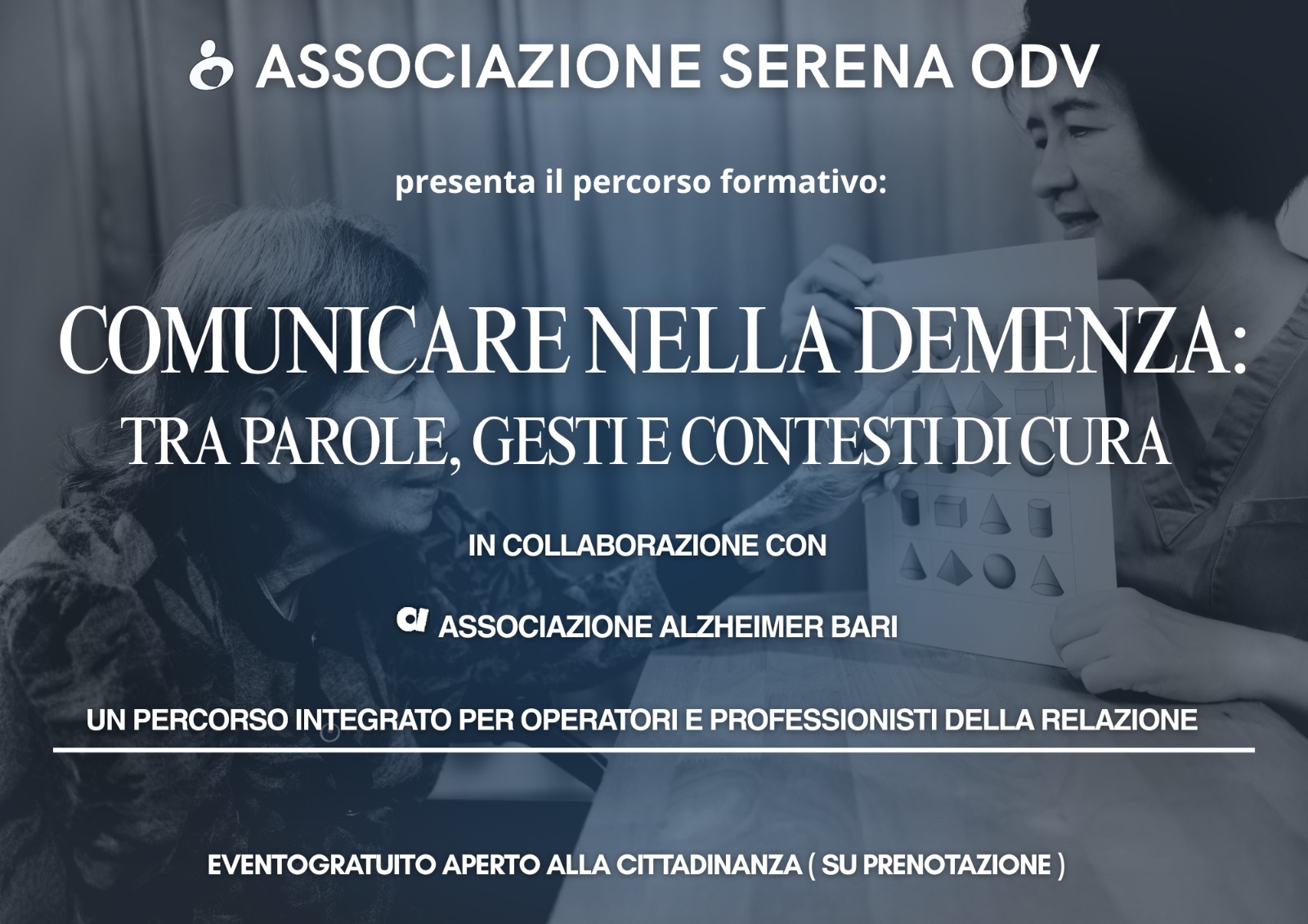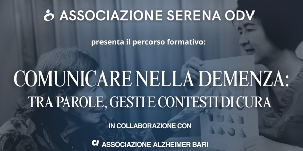 Percorso integrato e gratuito, per operatori e professionisti della relazione, in collaborazione con l'Associazione Alzheimer Bari. (6 LEZIONI) Galleria Immagini ›